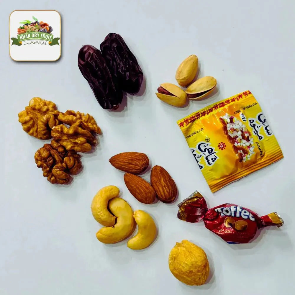 These items are carefully chosen to embody traditional values and best wishes, making each Nikah Bid Box a perfect gift to cherish and share during your celebration. Khan Dry Fruits invites you to make your Nikah ceremony unforgettable with our exquisite Nikah Bid Boxes.